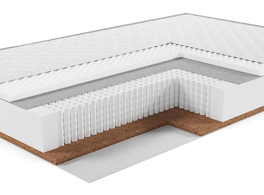 | Материал | Блок независимых пружин, Хлопковое полотно, Латексированная кокосовая плита, Усиление по периметру матраса |