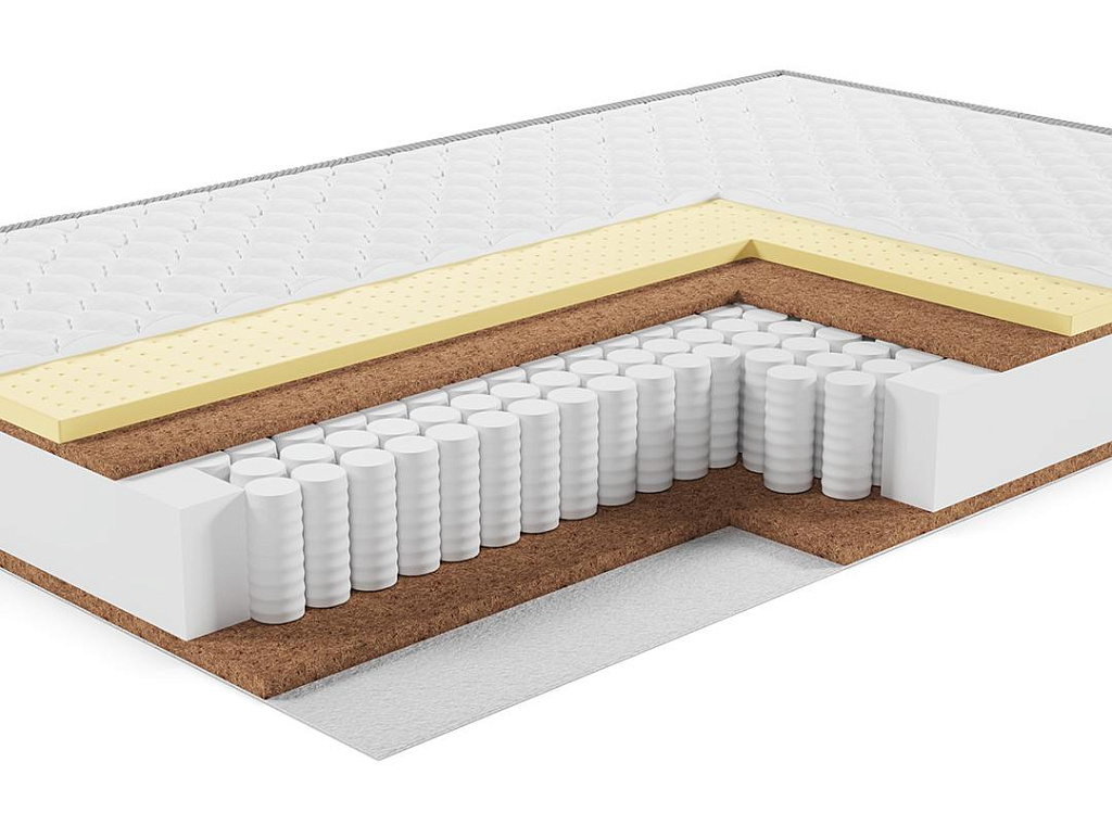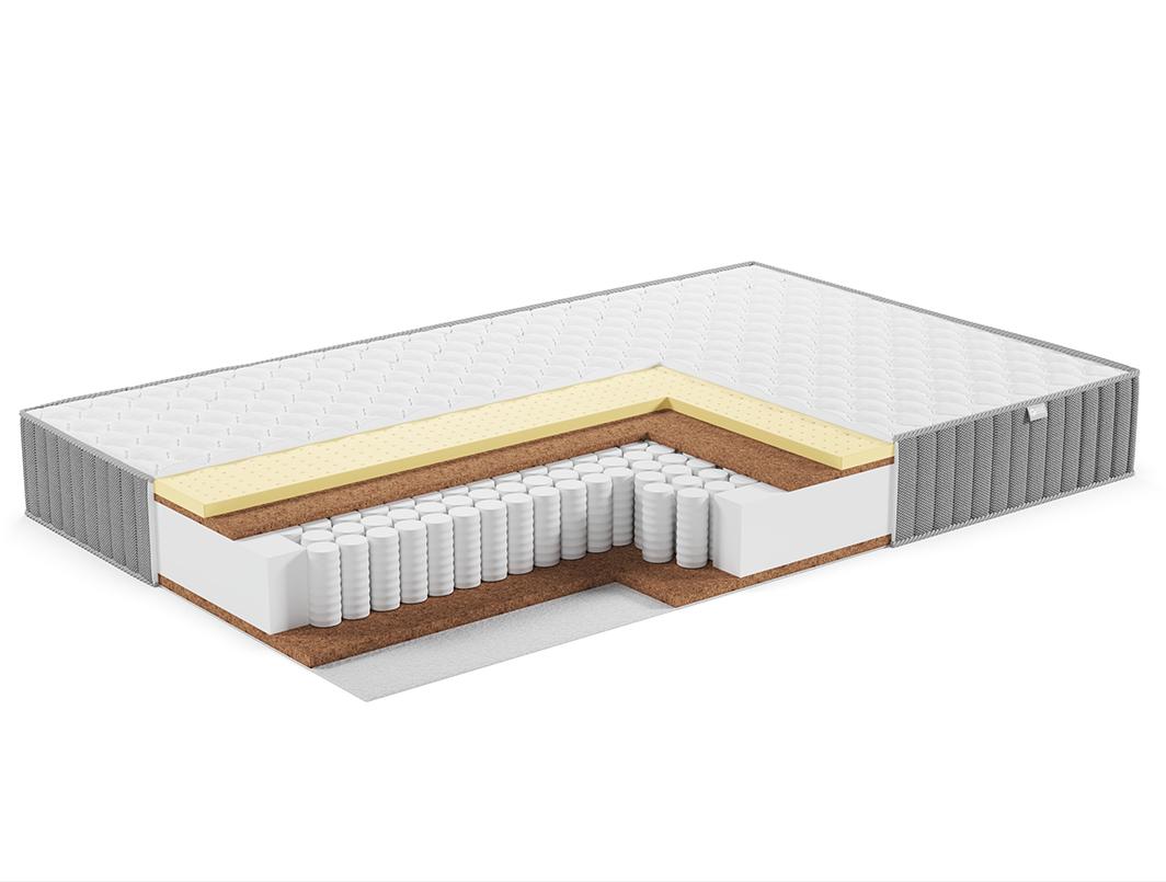 МатериалЛатекс, Блок независимых пружин, Хлопковое полотно, Латексированная кокосовая плита, Усиление по периметру матраса