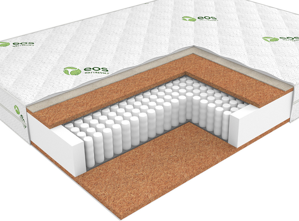 | Материал | Кокосовая койра, Блок независимых пружин, Хлопковое полотно, Чехол, Усиление по периметру матраса |