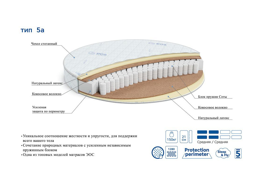 Матрас EOS Премьер 5а – это уникальное соотношение жесткости и упругости для поддержки всего вашего тела.