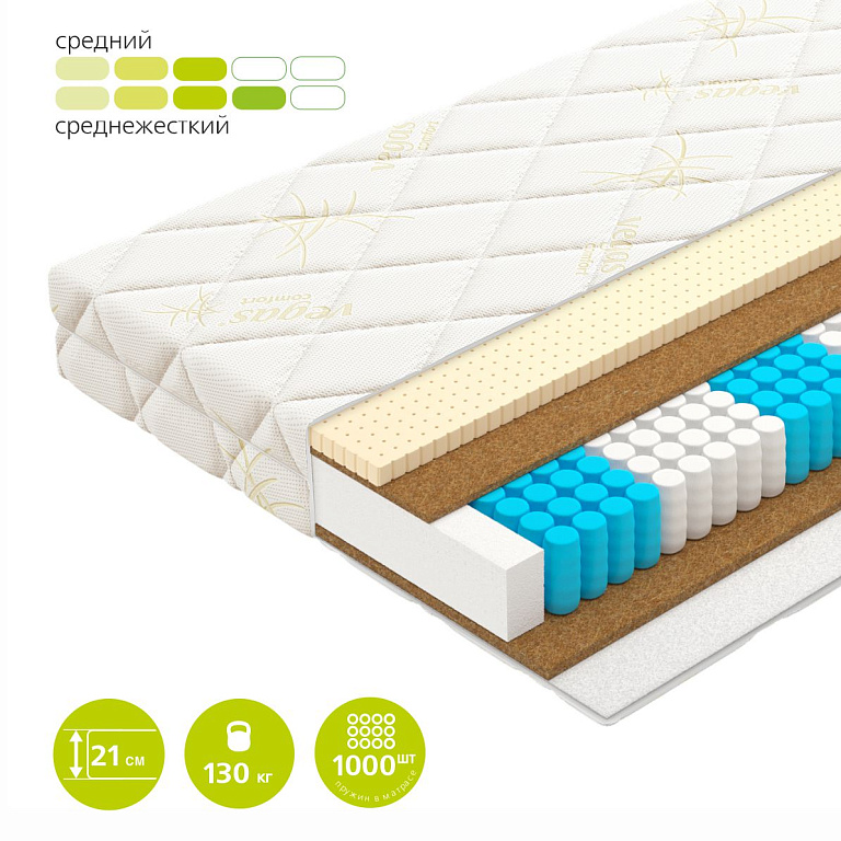 Bonus - самая популярная модель в коллекции. Идеальный баланс пружинного блока и натуральных материалов для оптимальной поддержки позвоночника.