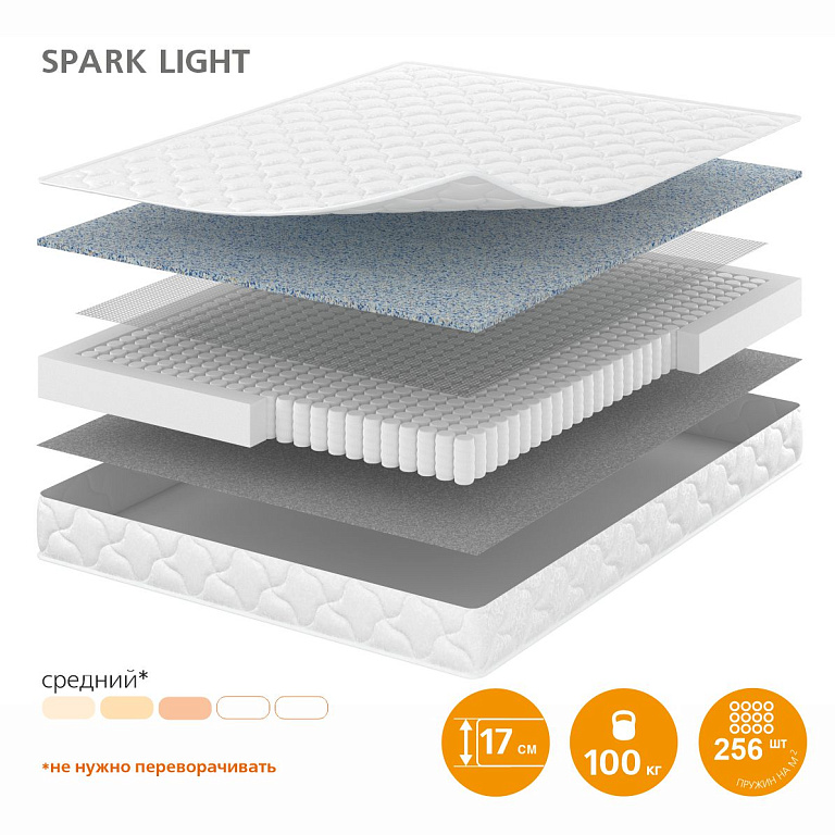 Односторонний мягкий матрас с блоком зависимых пружин Bonnell и слоем эластичного материала AirFoam. Практичное недорогое решение.