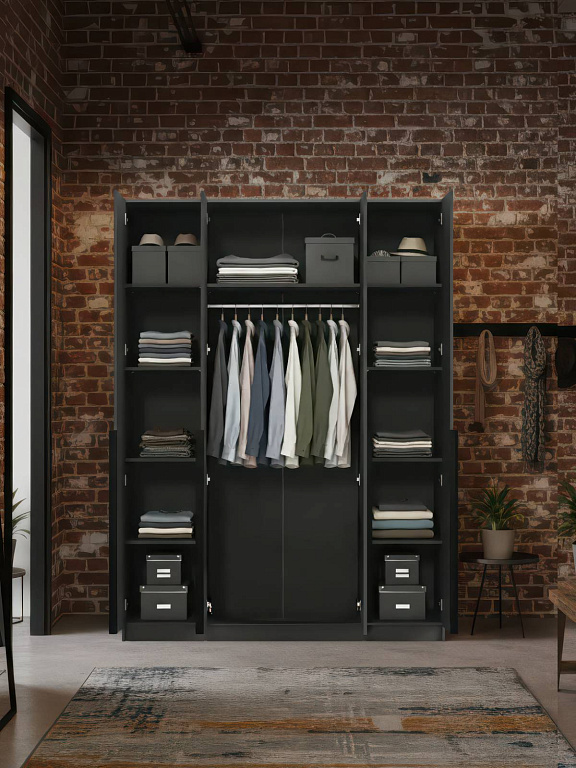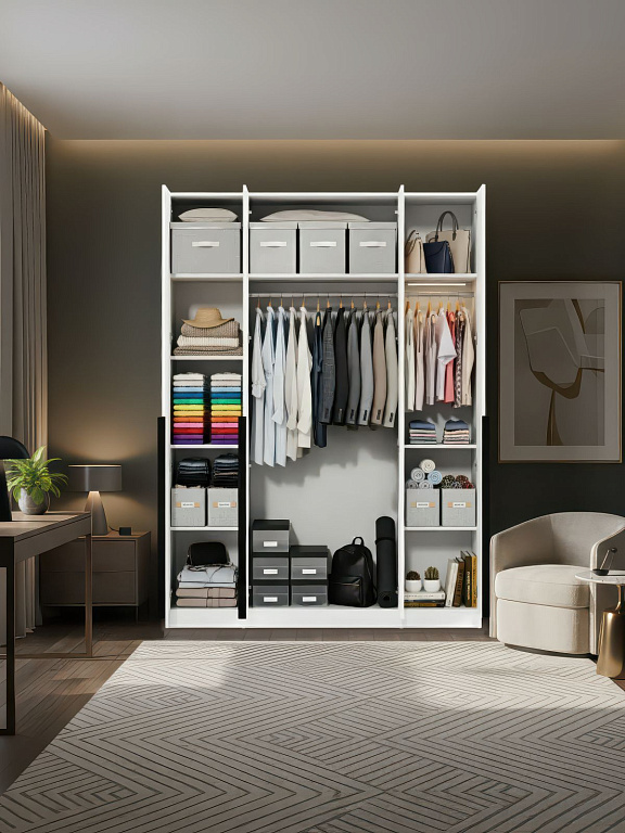 С выдвижными ящиками или полками, с отделениями для обуви или многоярусными штангами для одежды, с зеркальными, глухими дверями или вовсе без них — создайте свой идеальный шкаф, который на 100% будет соответствовать вашим потребностям.