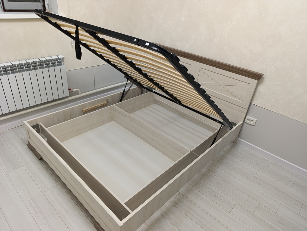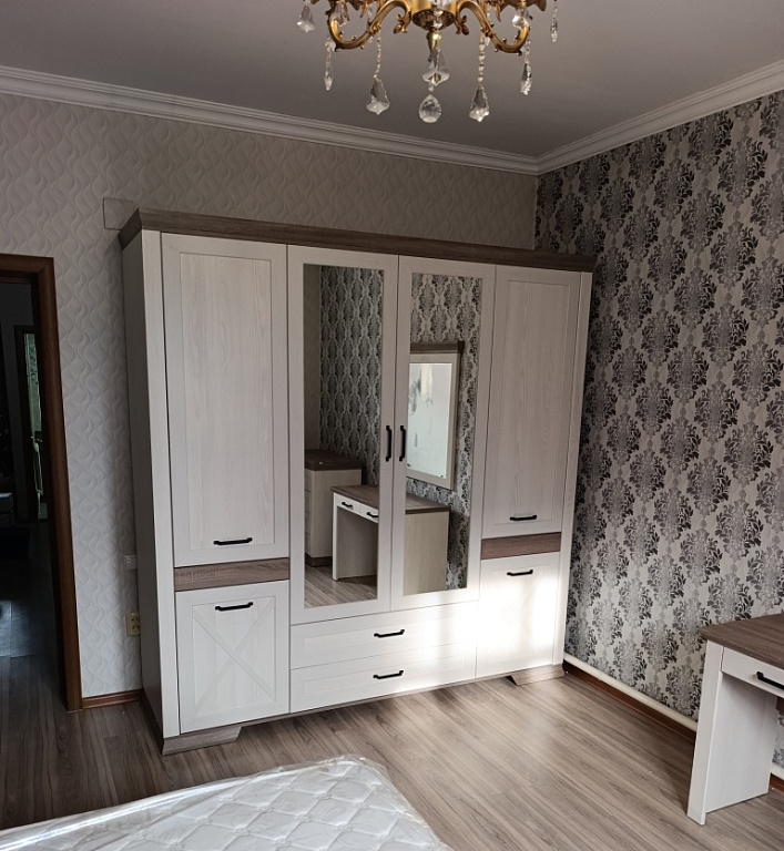 Спальня Marselle — тихая светлая комната для отдыха и восстановления сил. В коллекции представлены вместительный трёхдверный шкаф, комод с зеркалом, прикроватные тумбы, а также два варианта кроватей: с выдвижными ящиками или с подъёмным механизмом.
